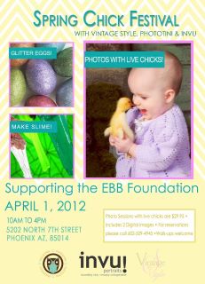 Photos with live chicks, Glitter Easter Eggs EBB Style, and Make Slime with Ms. Science. Proceeds go to benefit the EBB Foundation